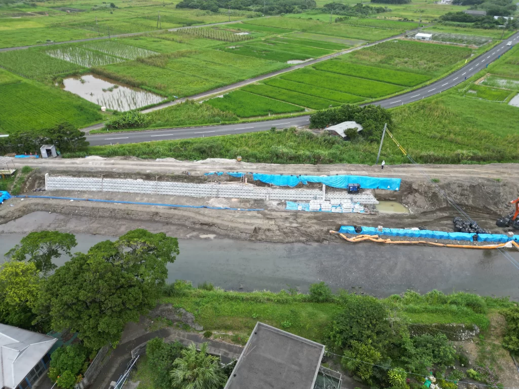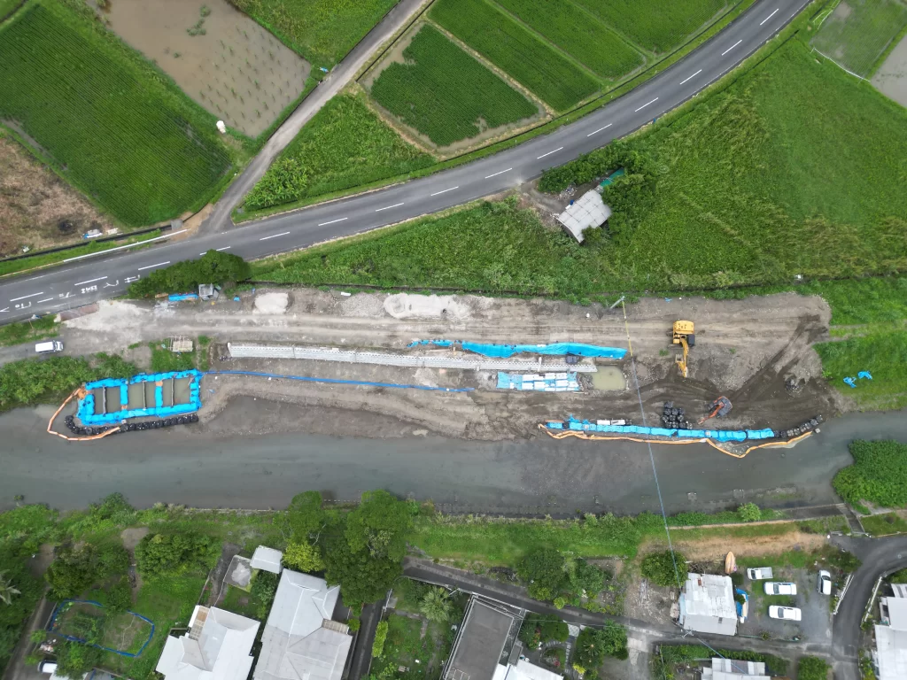| 工事概要 | 河川土工・法覆護岸工・仮設工 |